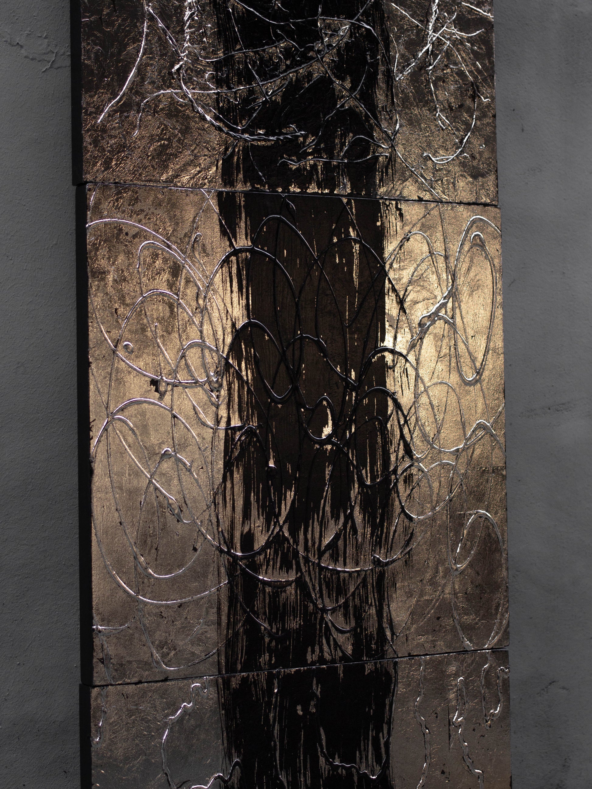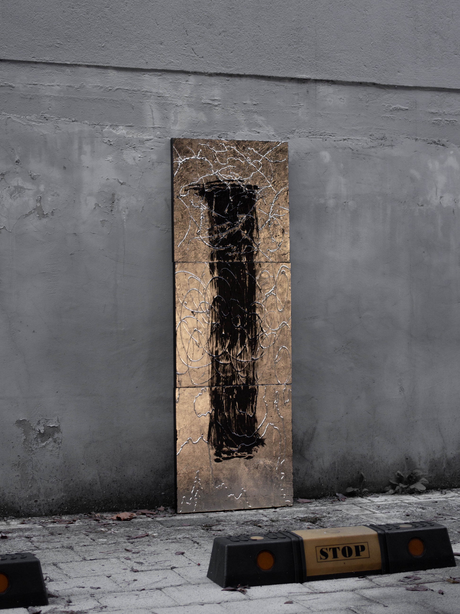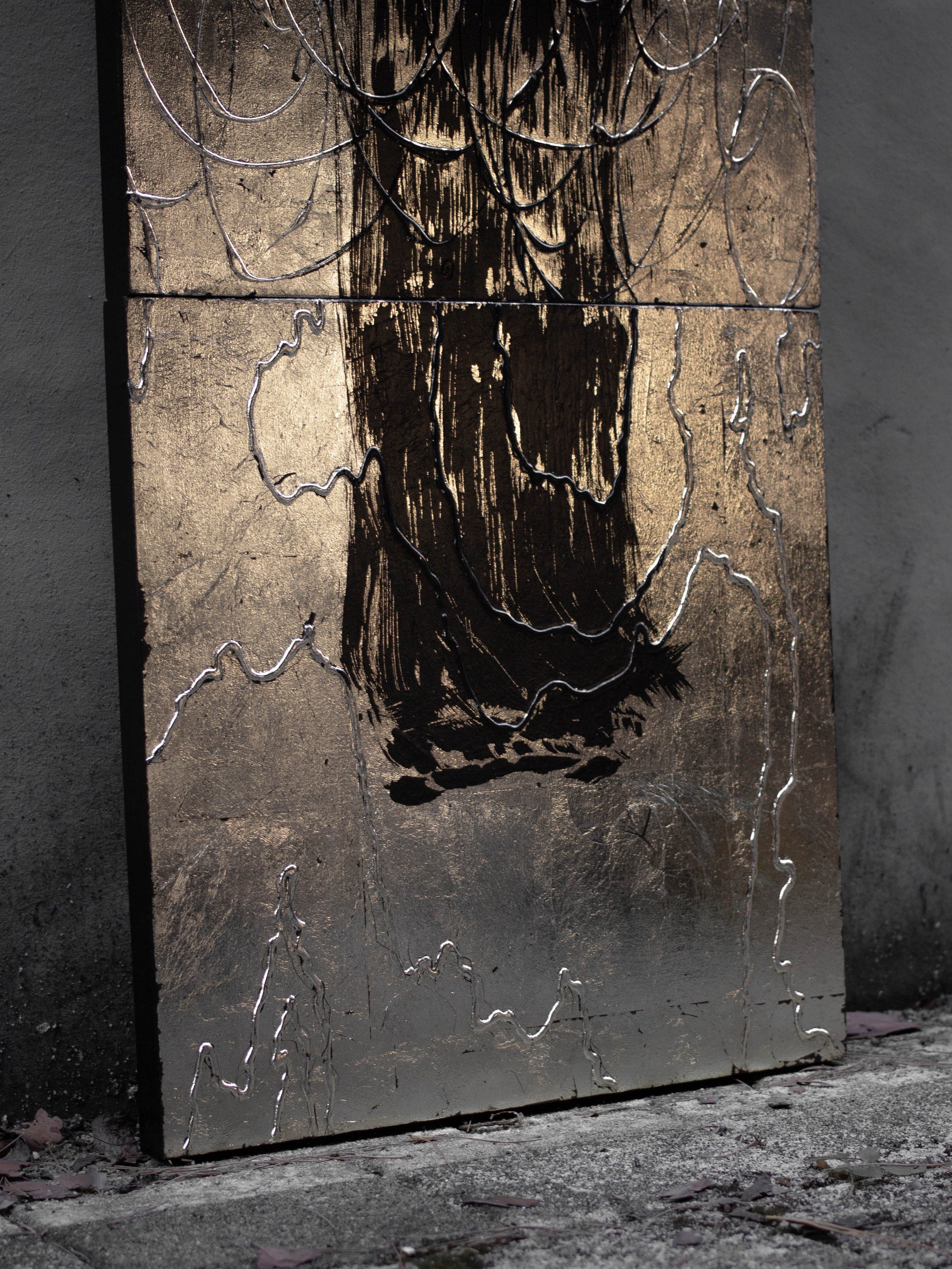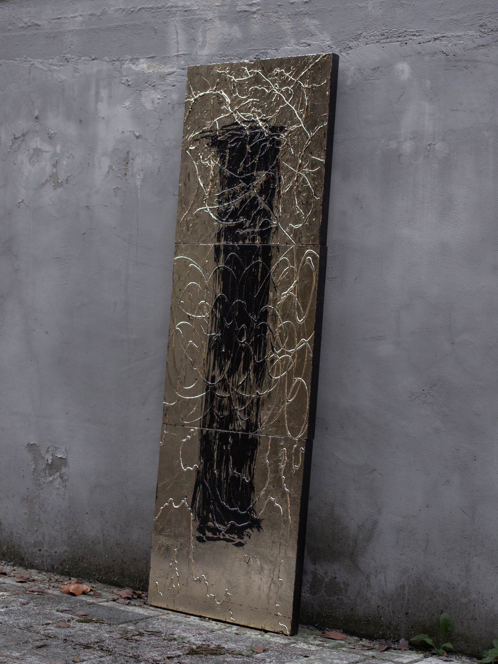 Various materials* covered with golden leaf and acrylic on separate panels, 2025