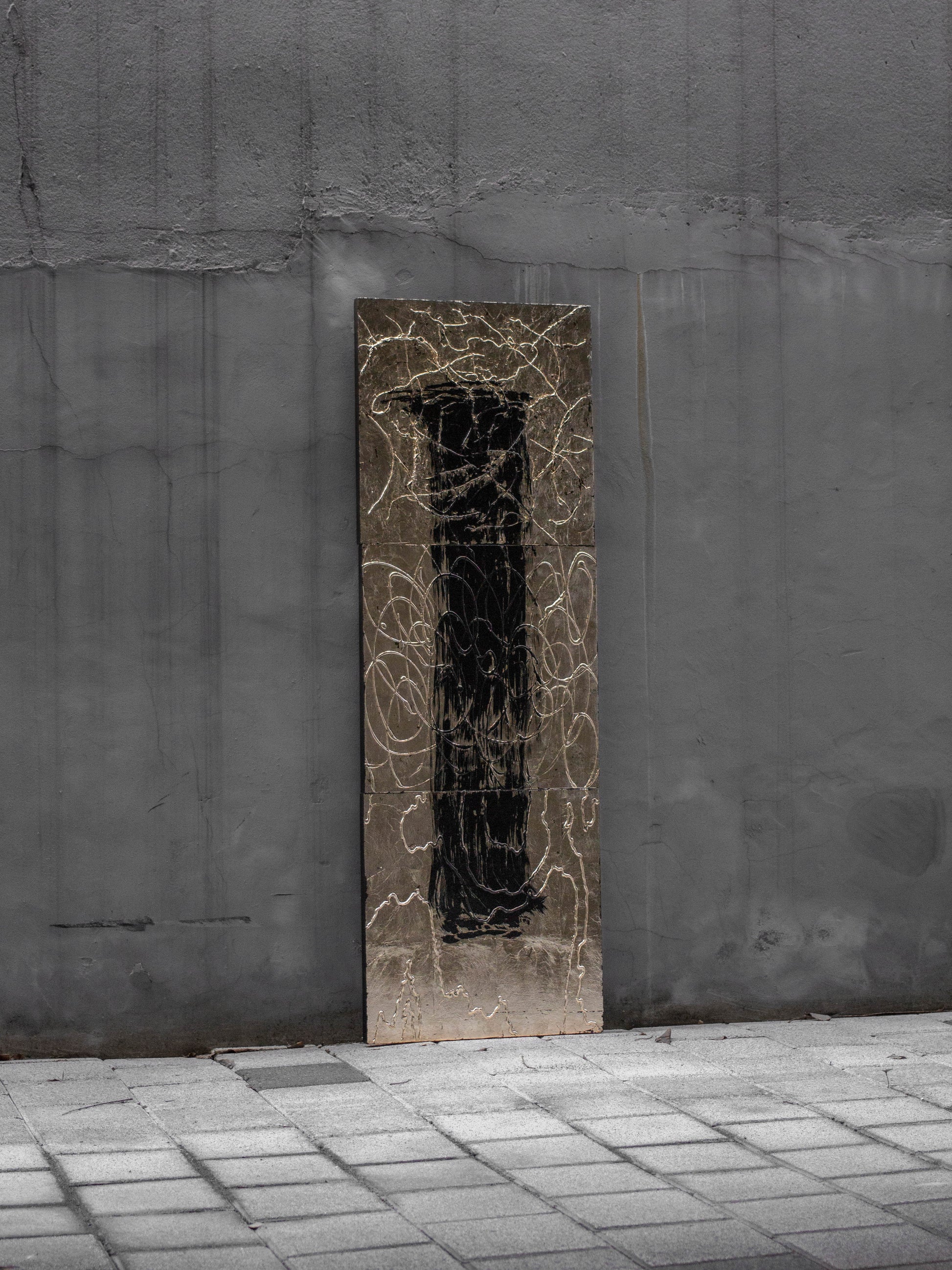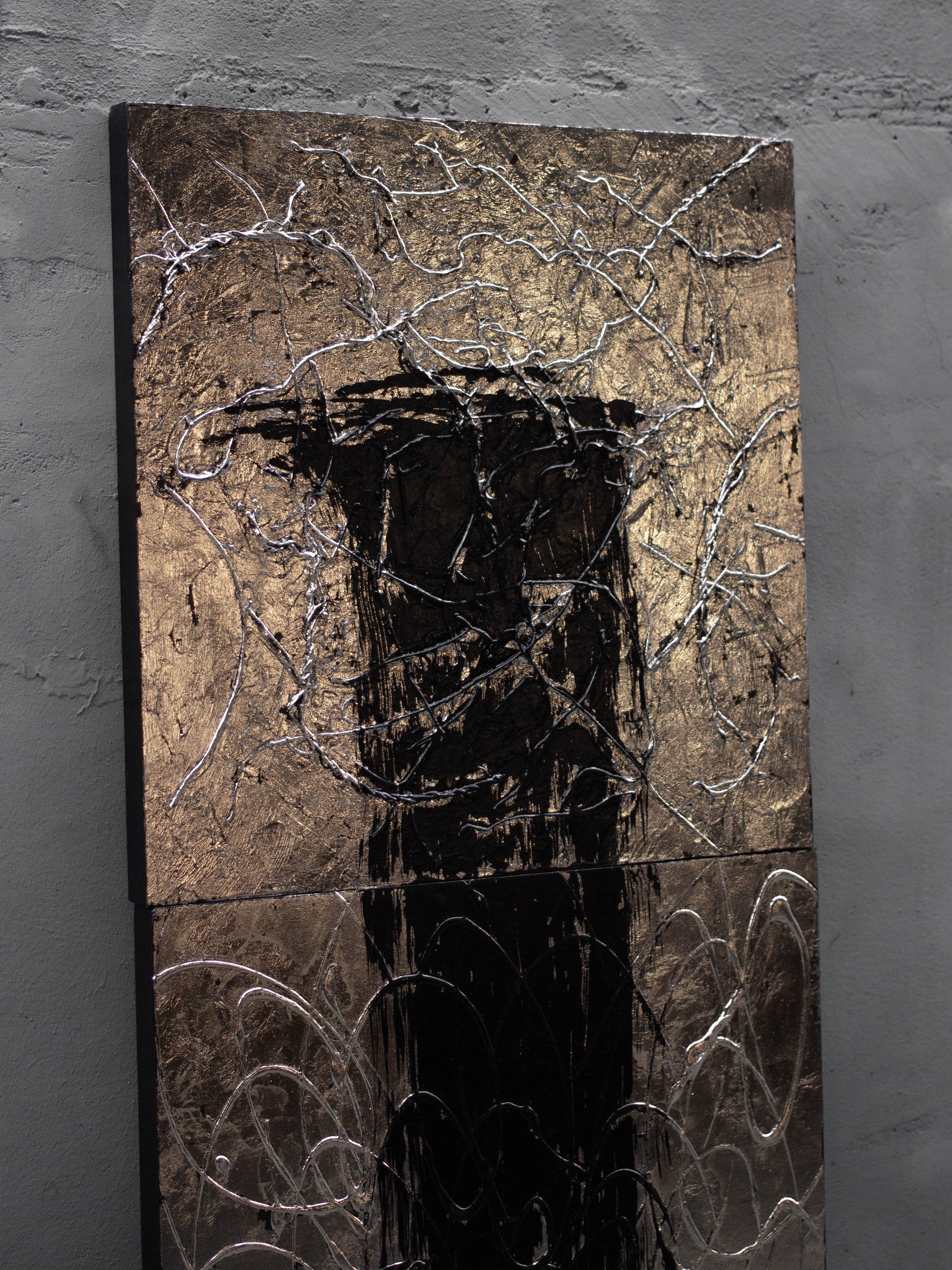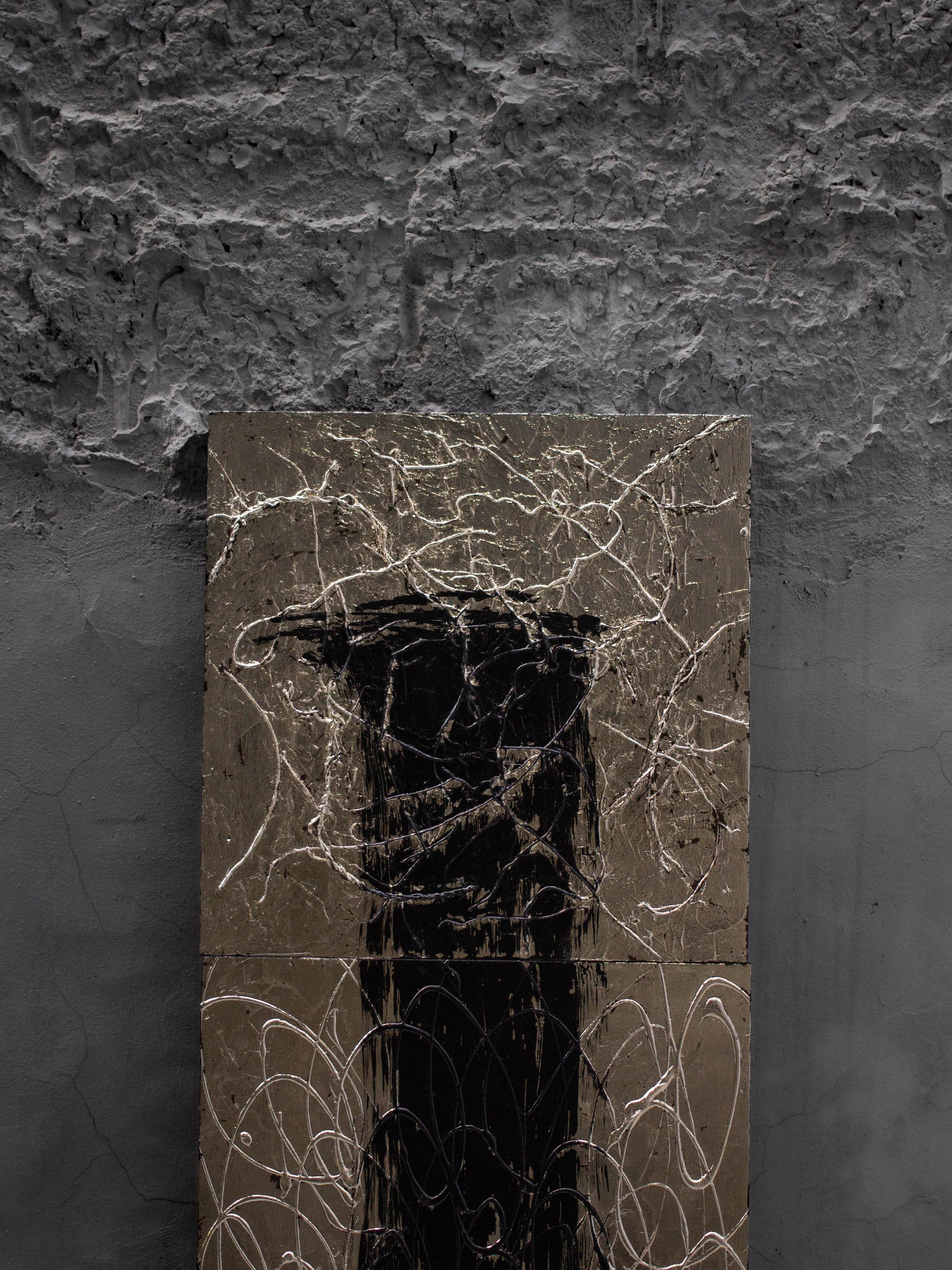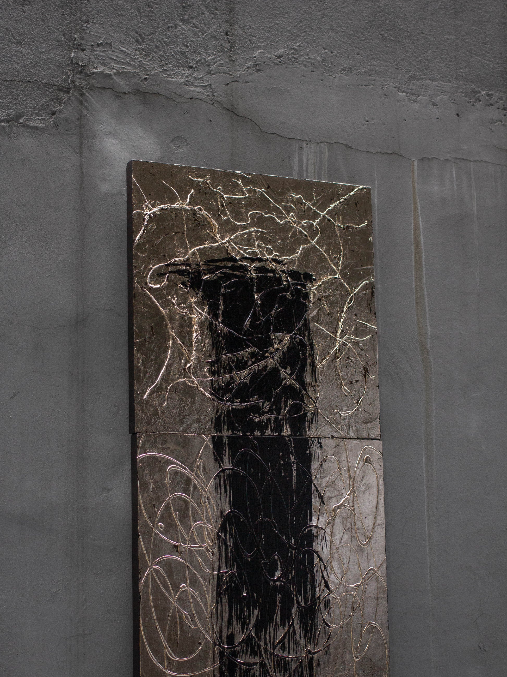 Various materials* covered with golden leaf and acrylic on separate panels, 2025