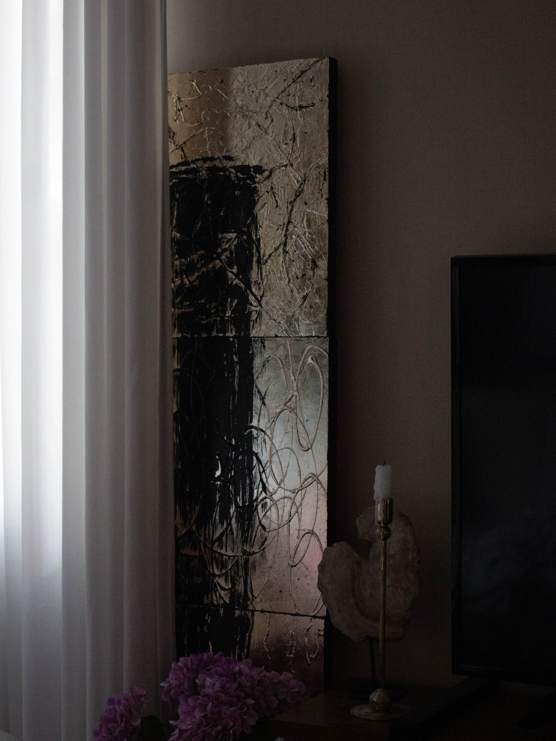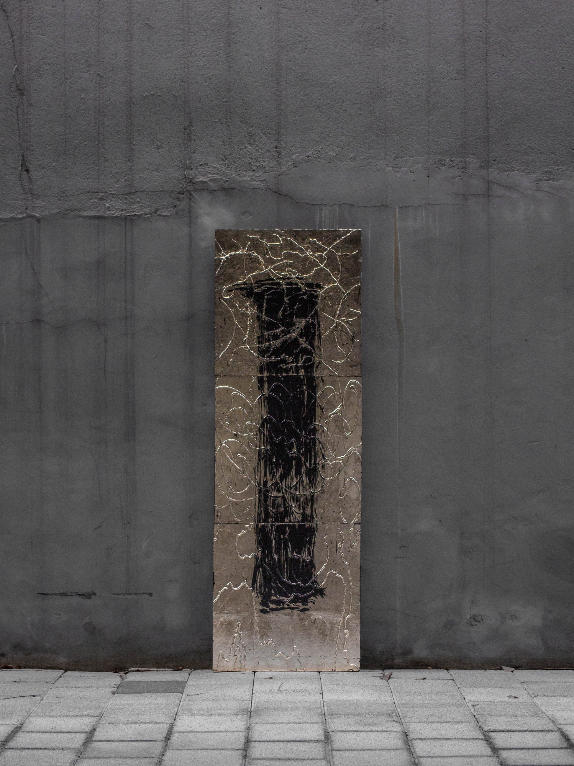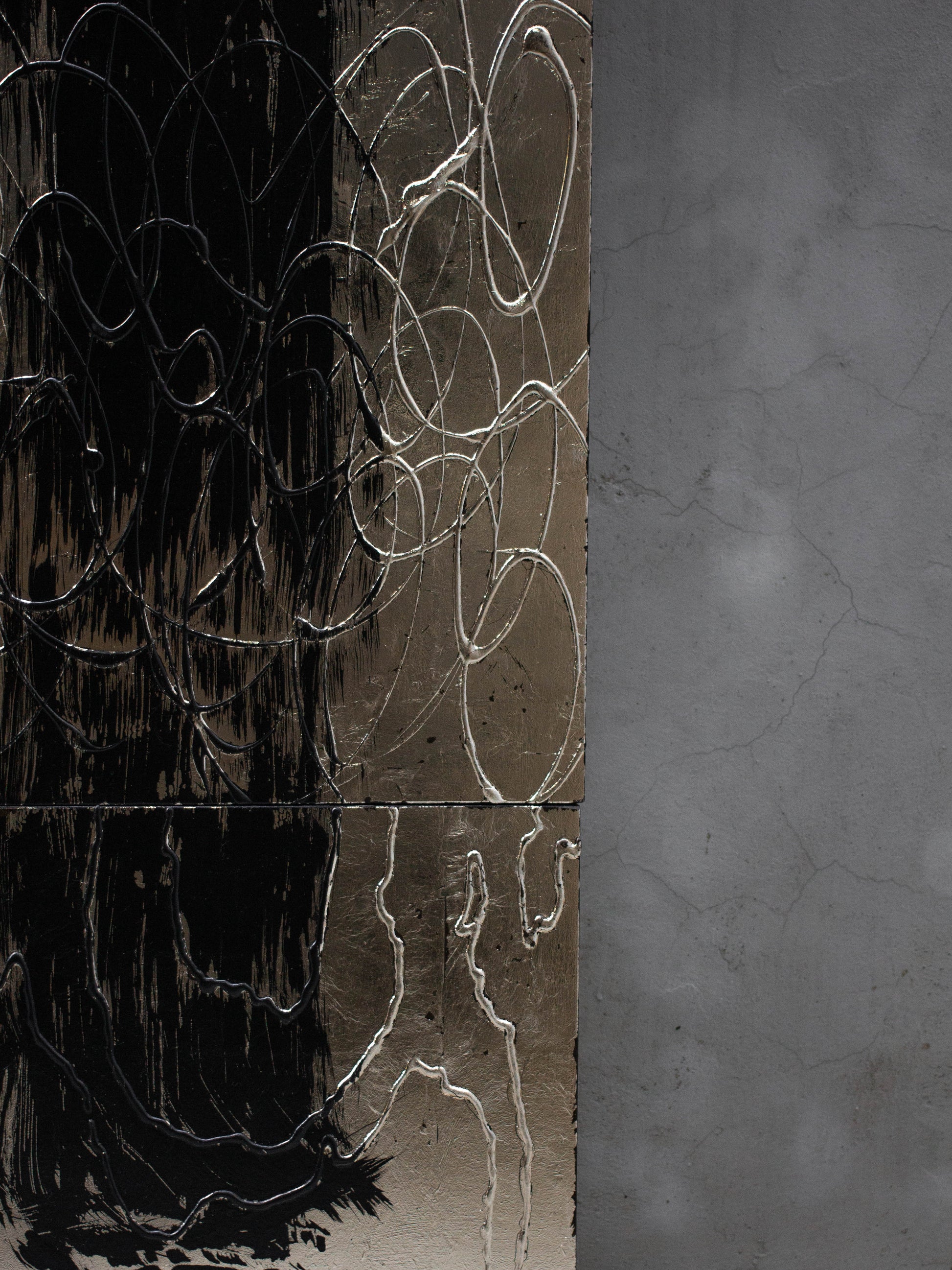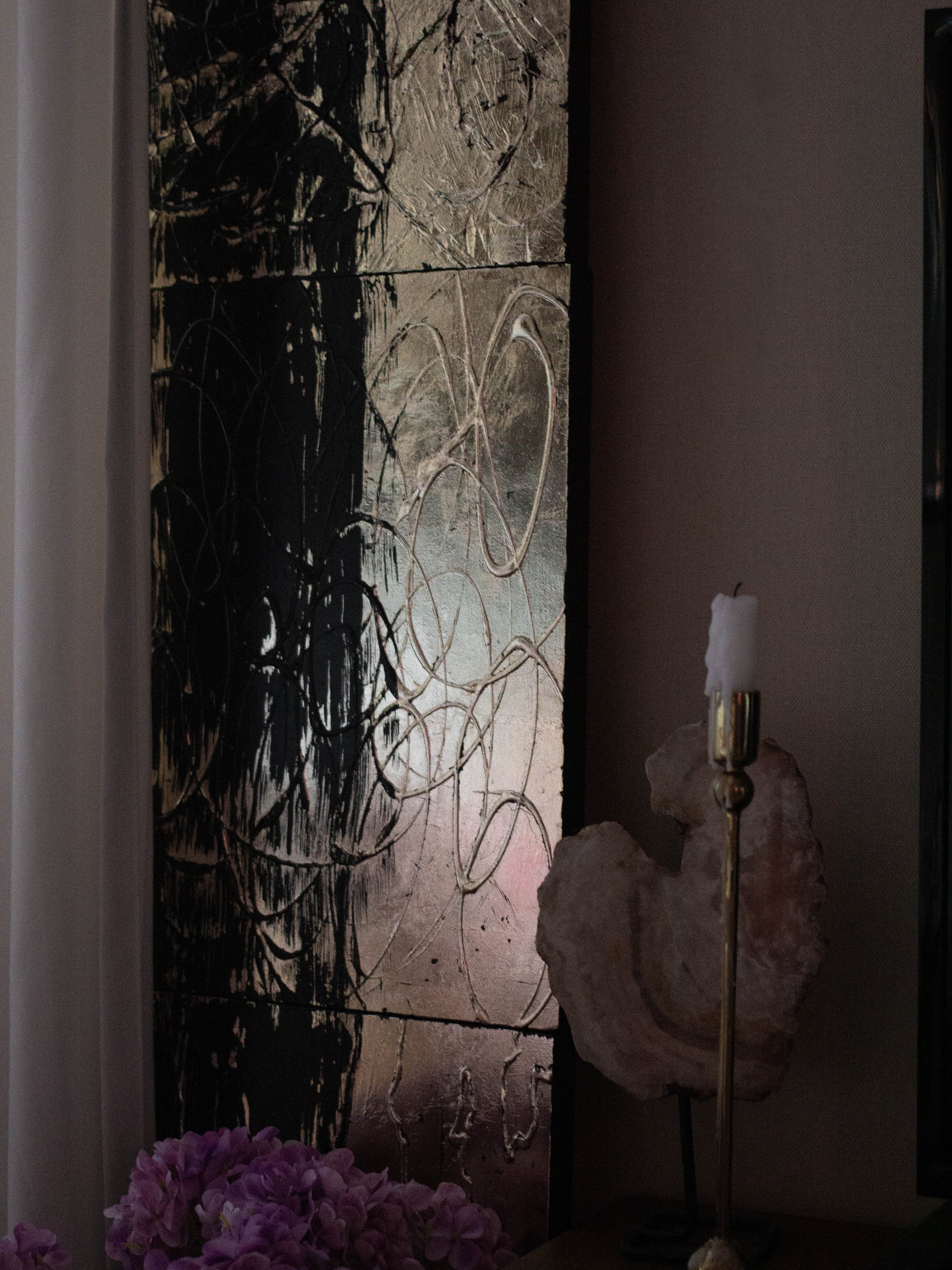 Various materials* covered with golden leaf and acrylic on separate panels, 2025